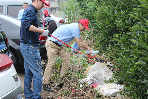 5月26日,第一批近30名员工来到武进万达广场售楼处北面地块,将倾倒在此的建筑垃圾、生活垃圾清理干净。【组图】